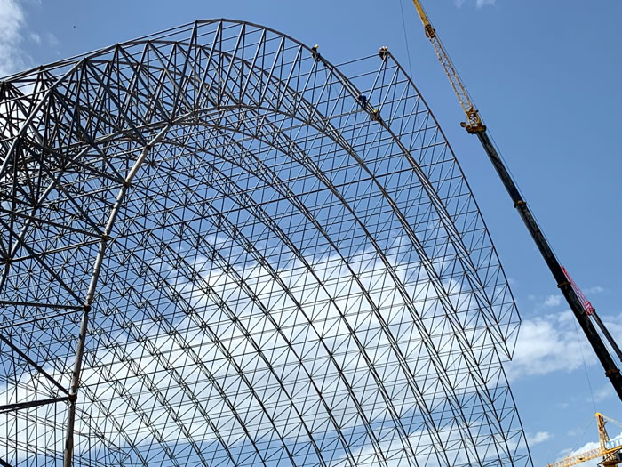 (2)网架加工前应对现场尺寸进行复测,确认无误后方可进行加工、安装;网架制作、运输、安装应遵守《空间网格结构技术规程》JGJ7-2010、《钢网架梧州螺栓球节点》JG/T 10-2009、《钢网架梧州螺栓球节点用高强度螺栓》 GB/T 16939-2016、《梧州钢结构梧州工程梧州施工规范》 GB50755-2012、《梧州钢结构梧州工程施工质量验收标准》 GB50205-2020。